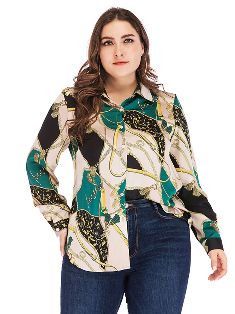 * Описание товара: Новый; Модный; цветочный; длинный рукав; на пуговицах; большой размер