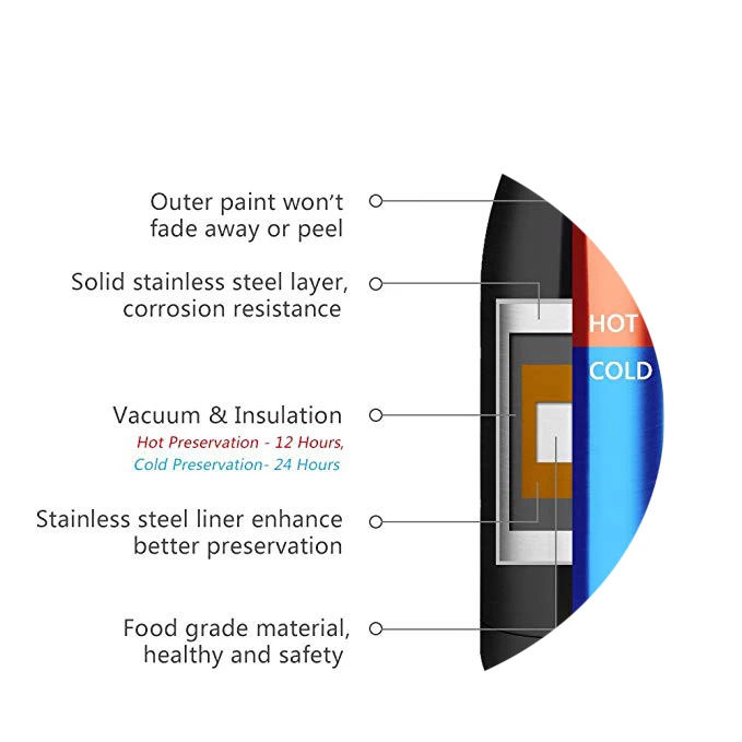 Бутылка для воды с двойными стенками и вакуумной изоляцией. Внешняя часть внутренней стены, в вакуумной изоляции, выложена в медь для повышенной изоляции. Эта технология увеличивает теплоизоляционную способность, сохраняя ваш напиток горячим или холодным в течение нескольких часов. Нержавеющая сталь с порошковым покрытием 304-Эта многоразовая бутылка изготовлена из высококачественной нержавеющей стали gage 304. Этот материал не содержит бисфенола и никогда не ржавеет и не оставит плохой металлический вкус во рту. Выберите один из самых популярных и долговечных цветов с порошковым покрытием на рынке. Этот продукт не безопасен в посудомоечной машине, но широкий рот позволяет легко чистить. Емкость Достаточно большая, чтобы соответствовать вашим ежедневным потребностям гидратации. Вы также можете хранить молоко или кофе. Нержавеющая сталь отталкивает любые затягивающиеся вкусы. Положите вашу портативную спортивную бутылку воды в свою спортивную сумку, рюкзак или портфель в качестве своего повседневного компаньона. Также может поместиться в большинство автомобильных держателей. Открытый рот позволяет воде течь во время движения, чтобы помочь вам оставаться увлажненным. Двухстенная вакуумная Изолированная бутылка для воды позволяет легко заполнять и очищать. Даже при заполнении Льдом Бутылка не будет потеть. Не требуется каботажное судно! Дорожная бутылка для воды поставляется с герметичной, изолированной, без BPA и фталатов крышкой. Крышка из нержавеющей стали предотвращает случайные разливы. Эта многофункциональная бутылка для воды легко захватывается, пока вы находитесь на ходу.
