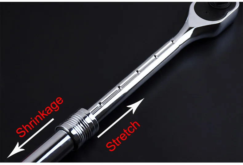 ● Идеально подходит для гаражной мастерской, металлических/деревянных рабочих, строителей, автомехаников, любителей, и DIY любителей, профессионалов и т. Д. ● Выдвижная длинная ручка трещотка торцевой ключ инструмент. Расширенная телескопическая ручка дизайн может увеличить крутящий момент; ● Конструкция трещотки с 72 зубцами. Она оснащена переключателем вперед и назад и кнопкой быстрого спуска. ● Изготовлен из термообработанной стали cr-v, прочный. Легкий и портативный, простой в использовании и переноске. ● Функция управления рулем одной рукой. ● Размеры в комплекте: 1/4 ", 3/8", 1/2 ". ● Упаковка содержит: 1 гаечный ключ (размер на выбор клиента)