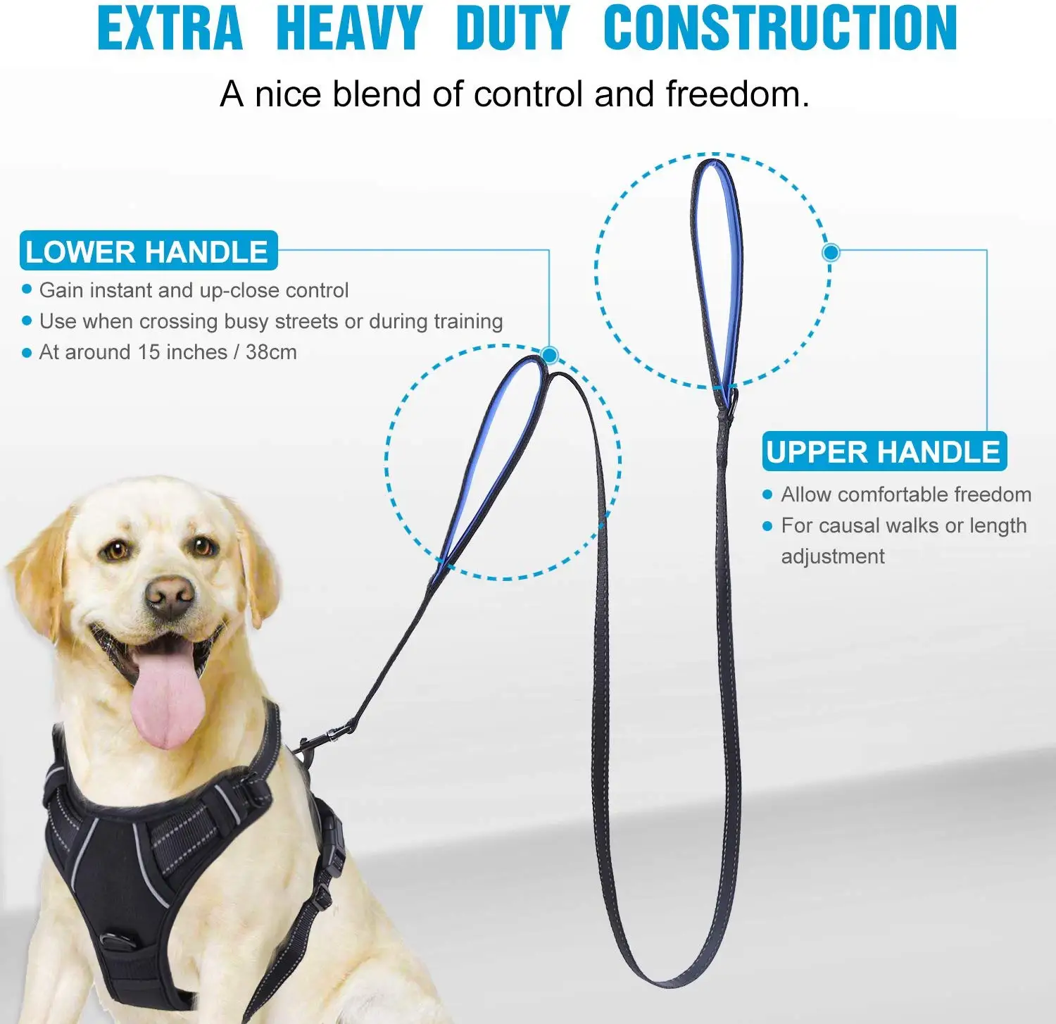 ✔Лучший контроль с двумя дорожными ручками: боится, что собака пересечет улицы в тяжелых условиях движения? Двойные ручки дорожного движения обеспечивают две ручки-нижняя, специально разработанная для тренировки и использования при движении, с длиной 1,25 фута (от зажима), он может обеспечивать мгновенный и близкий контроль над собакой при прохождении переполненных районов и дорожных дорожек. Верхний также служит целью повседневной прогулки •✔БОЛЕЕ БЕЗОПАСНАЯ Прогулка со светоотражающей строчкой: Сделайте свою собаку такой же яркой, как звезда ночью! 3M Светоотражающий дизайн со стежками на обе стороны дает отличную видимость и яркость для вашего питомца. Сделайте свою ночную прогулку с собакой намного безопаснее, намного проще и удобнее