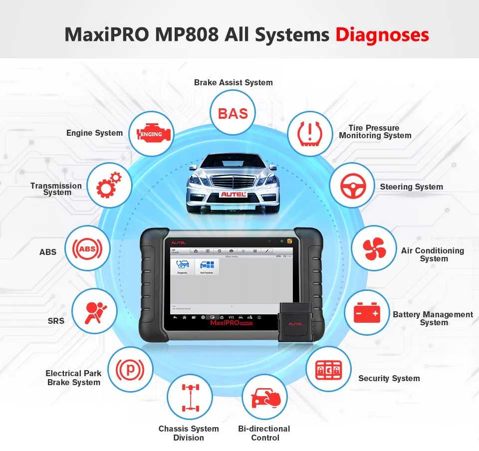 Профессиональная диагностика: MP808 является экономически эффективным диагностическим инструментом OE уровня, который поддерживает расширенное двунаправленное управление, кодирование ключей и многое другое, экономия времени на устранение неисправностей и облегчение работы для профессионалов, выполняющих важные задачи.