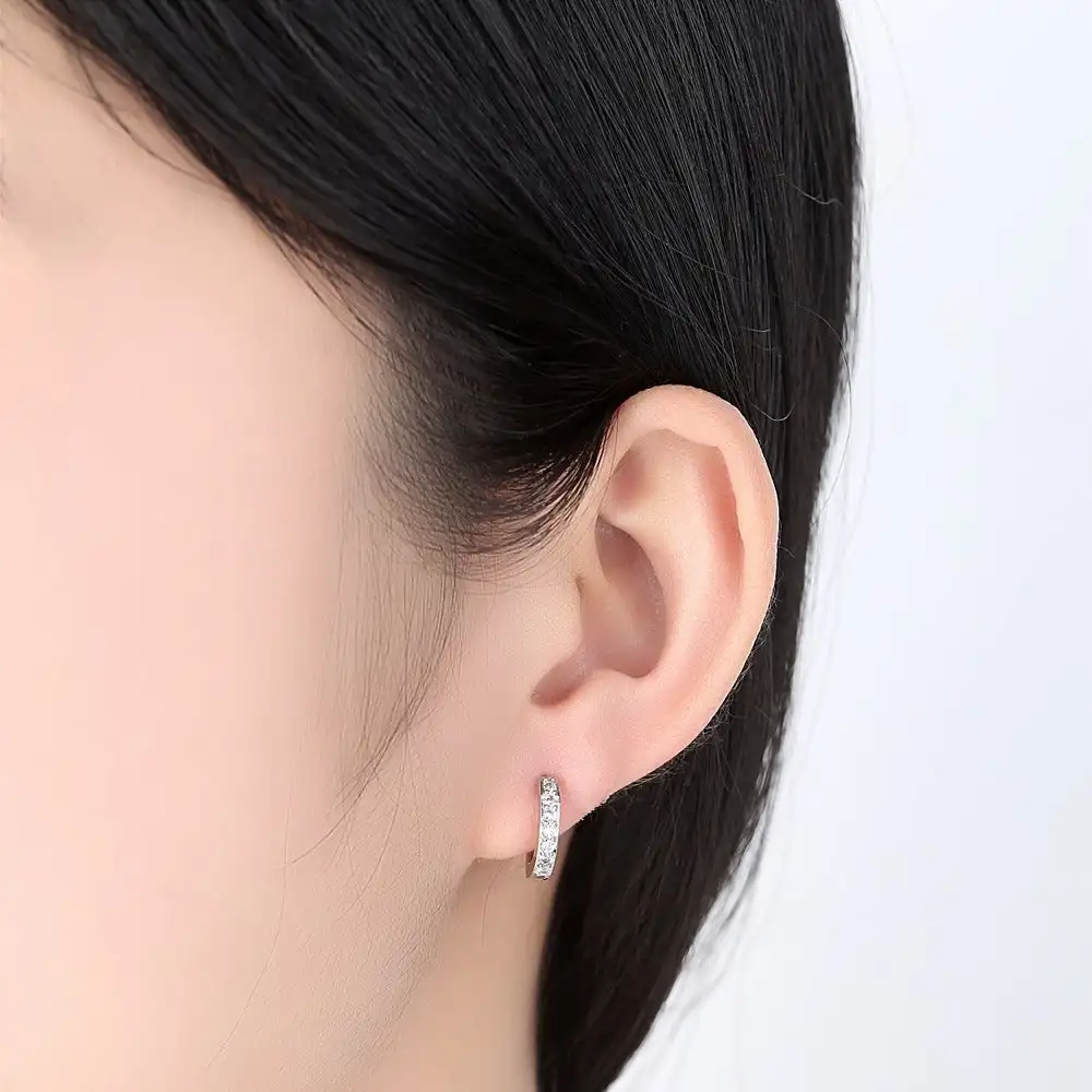 Подлинная 14 к белого золота Заполненные стерлингового серебра 1,2 ct круглые CZ Huggie серьги