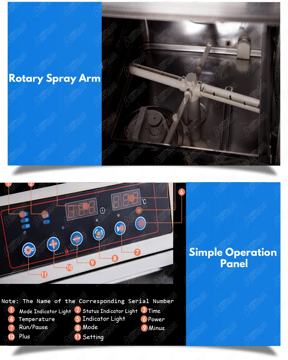 1. Всенаправленная дезактивация: 360 ° высокого давления роторная спрей-стирка 2. Высокотемпературная стерилизация 3. Цифровое управление: простая Рабочая панель, эффективная и быстрая 4. Утолщенная Нержавеющая сталь: общий корпус из нержавеющей стали #304 5. Тип открывания двери: передняя дверь