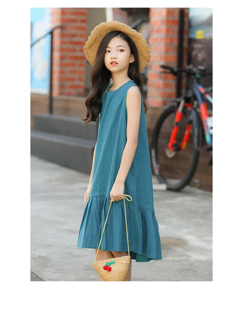 Подробная информация об этих больших детских платьях до середины икры; летние хлопковые платья для девочек; повседневные платья для больших девочек