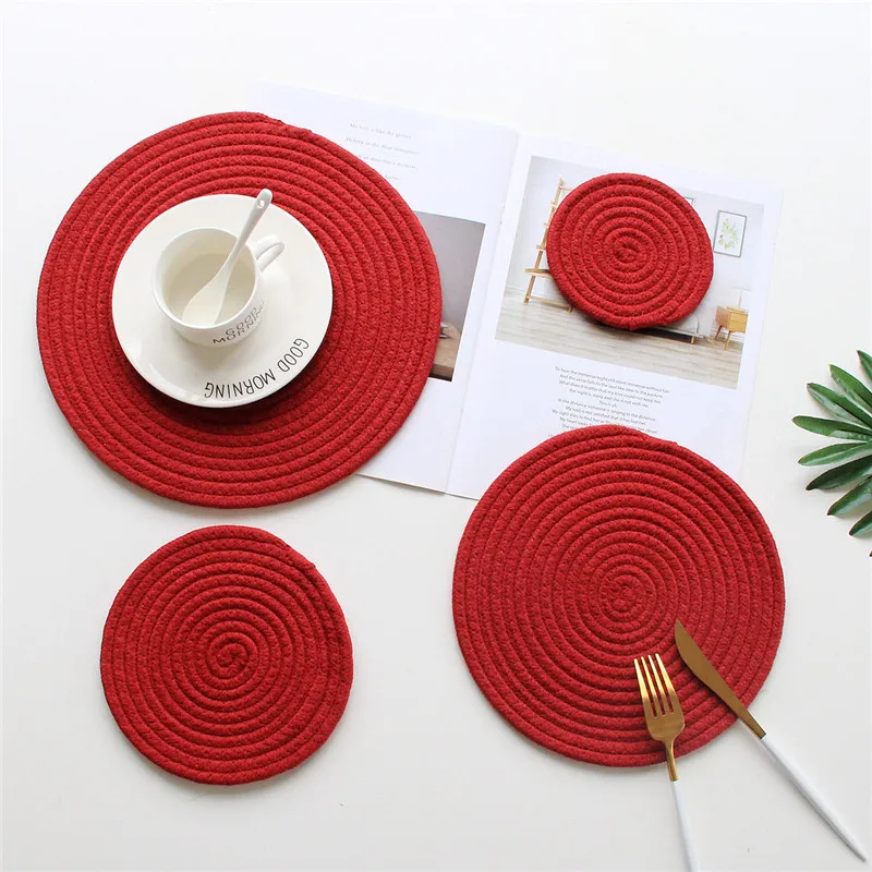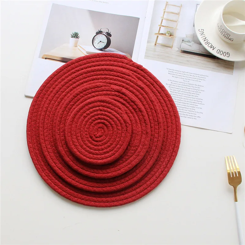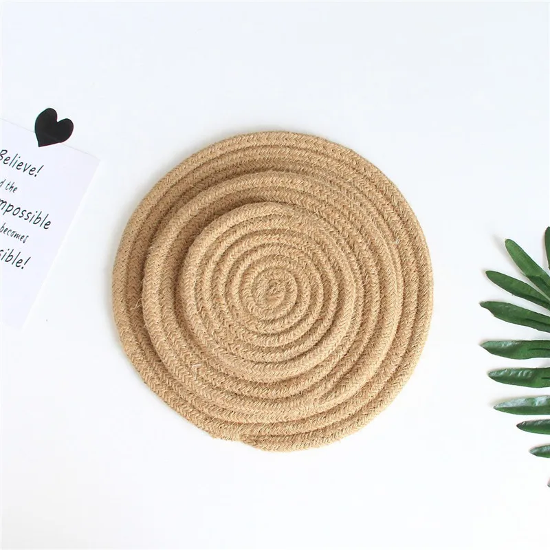 Салфетки ручной работы из хлопчатобумажной веревки, тканые коврики для стола, салфетка, посуда, чашка для напитков, изолирующая подставка для подстаканников, кухонный ужин, домашний декор25