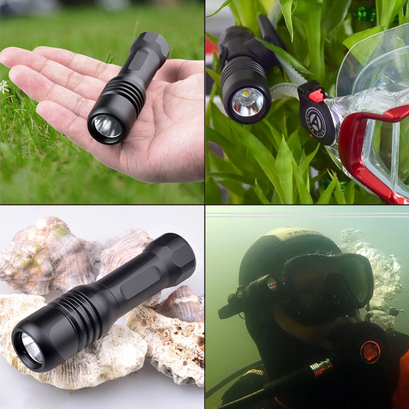 ▪ Ручной фонарик для дайвинга с 1 * XM-L2 U4 светодиодный 6500K Цветовая температура, яркость до 630 люменов. Максимальный диапазон до 130 метров
