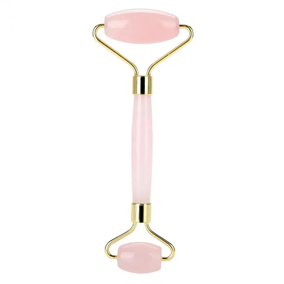Нефритовый ролик, натуральный розовый кристалл, двойной конец, массаж для лица, глаз, омолаживающий, Guasha, массажер для лица, инструмент для похудения
