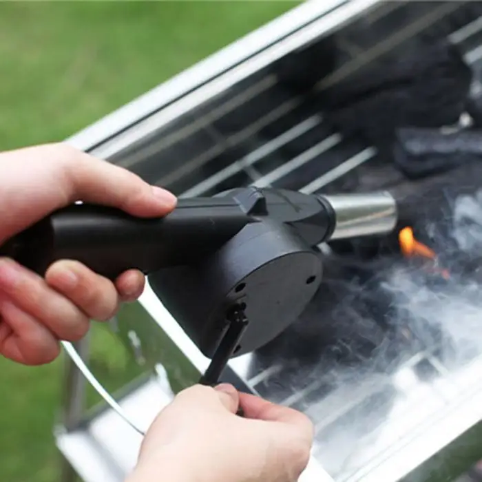 Работающий от руки, выдуйте небольшое количество воздуха, чтобы помочь зажечь уголь.
