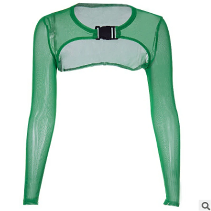 Женская одежда 2019, сетчатая прозрачная укороченная футболка с длинными рукавами, сетчатый боди, Модная стильная Сексуальная Новинка