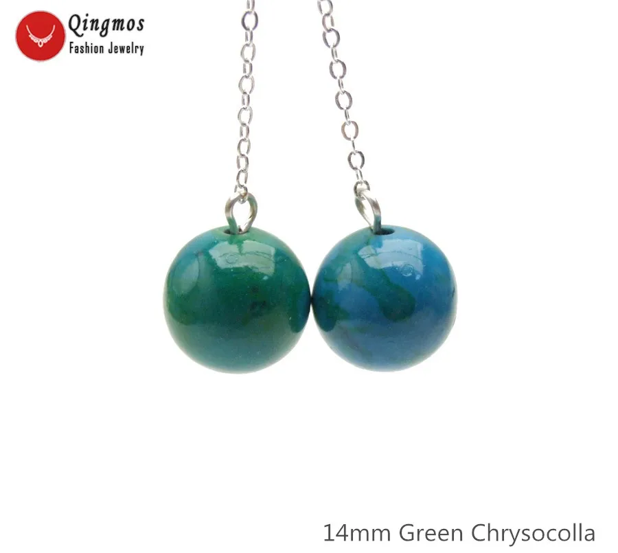 QingmosТрендовые натуральные хризоколлы серьги для женщин с зеленым 14 мм круглый хризоколла висячие серьги ювелирные изделия и стерлингового серебра S925 крючок серьги 728