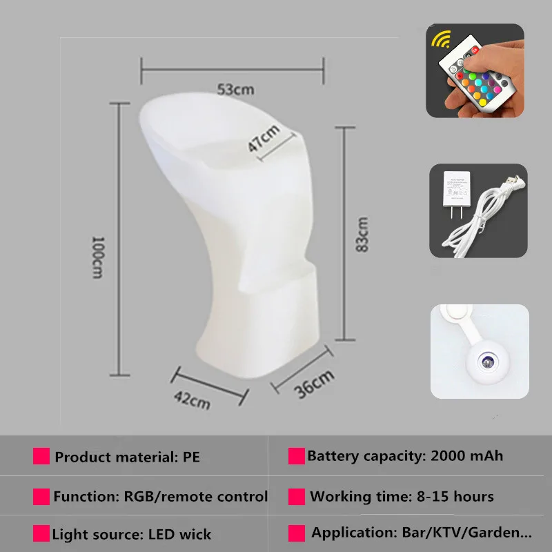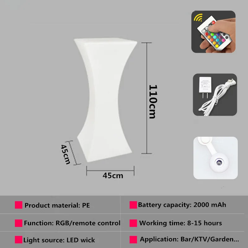 Освещенный светодиодный стол, светодиодный журнальный столик с зарядным аккумулятором и пультом дистанционного управления
