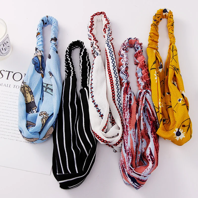 Модные женские полосатые шифоновые повязки на голову с цветочным принтом, эластичные повязки на голову, элегантные аксессуары для волос