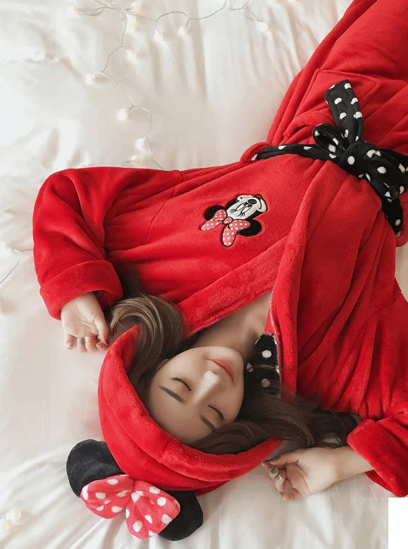 Модные зимние новые женские халаты, Коралловый бархатный халат, пижамы, банный фланелевый теплый халат, одежда для сна, милые ночные рубашки с героями мультфильмов, домашняя одежда