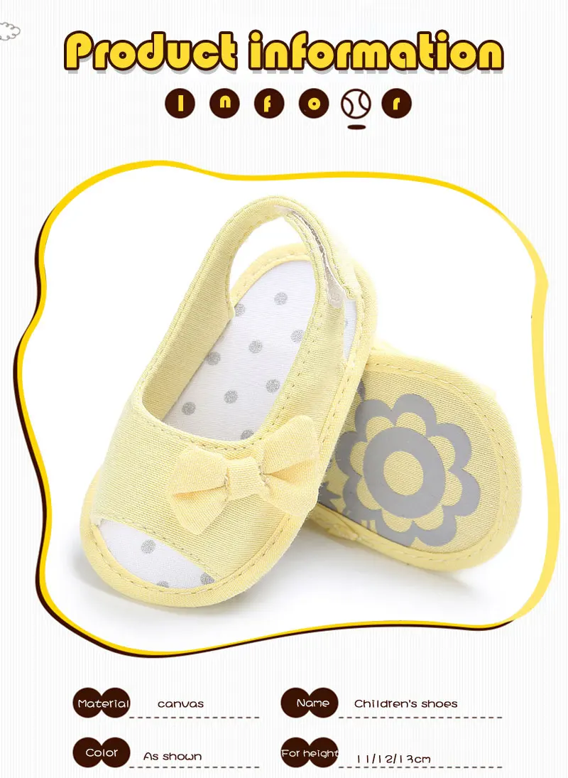Милая детская обувь для девочек; обувь для новорожденных, начинающих ходить; однотонная обувь с бантом для малышей; летние ботинки с мягкой подошвой; нескользящая парусиновая обувь для детей 0-12 месяцев