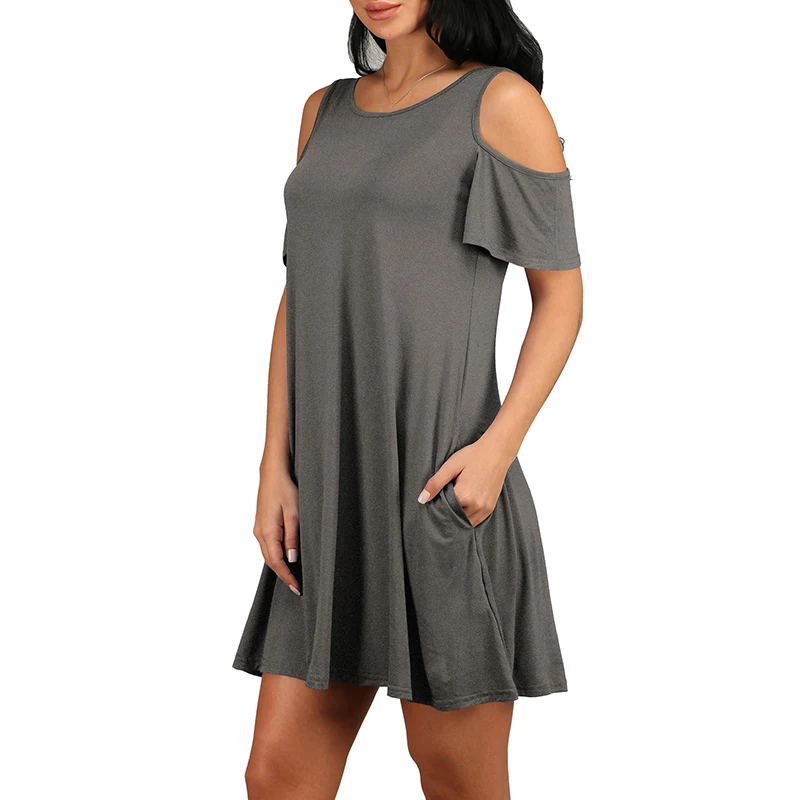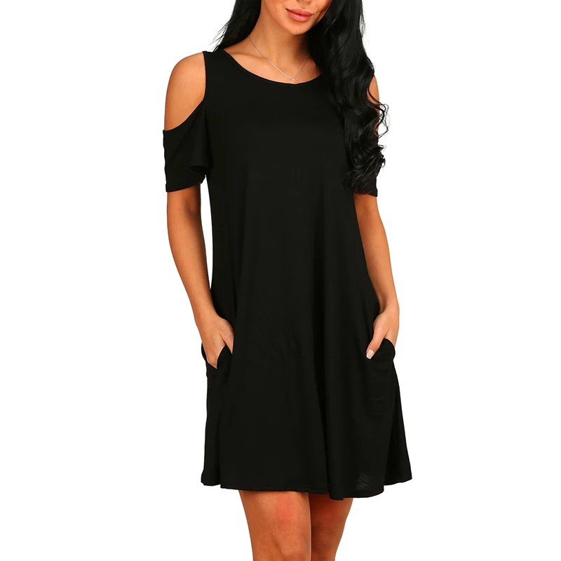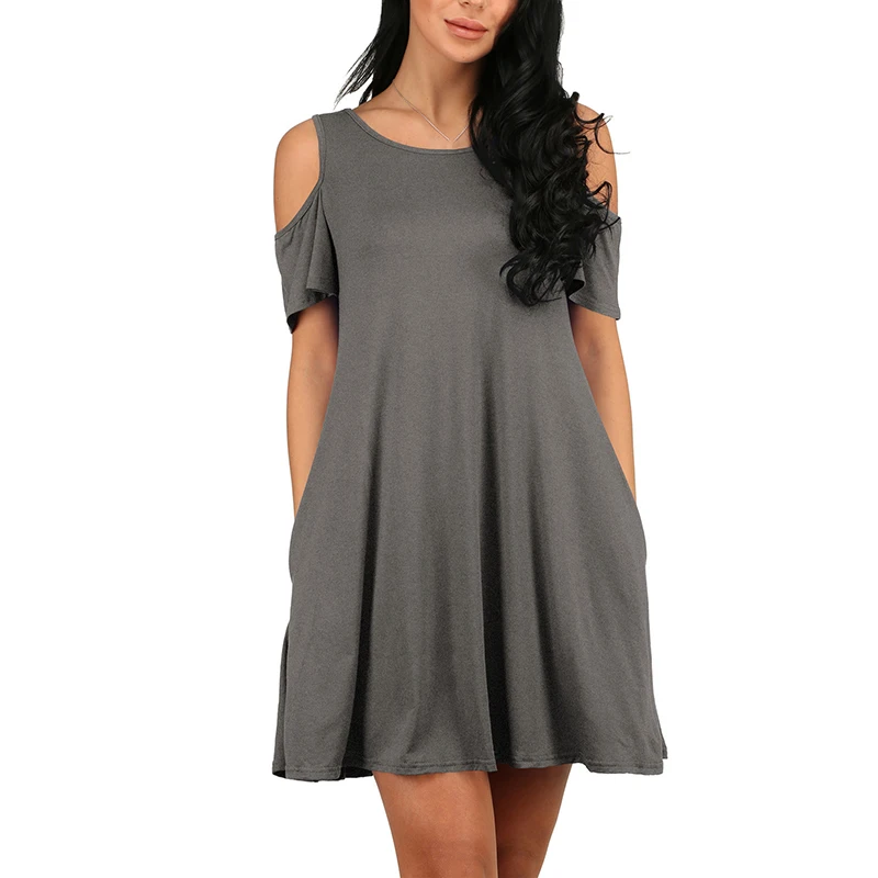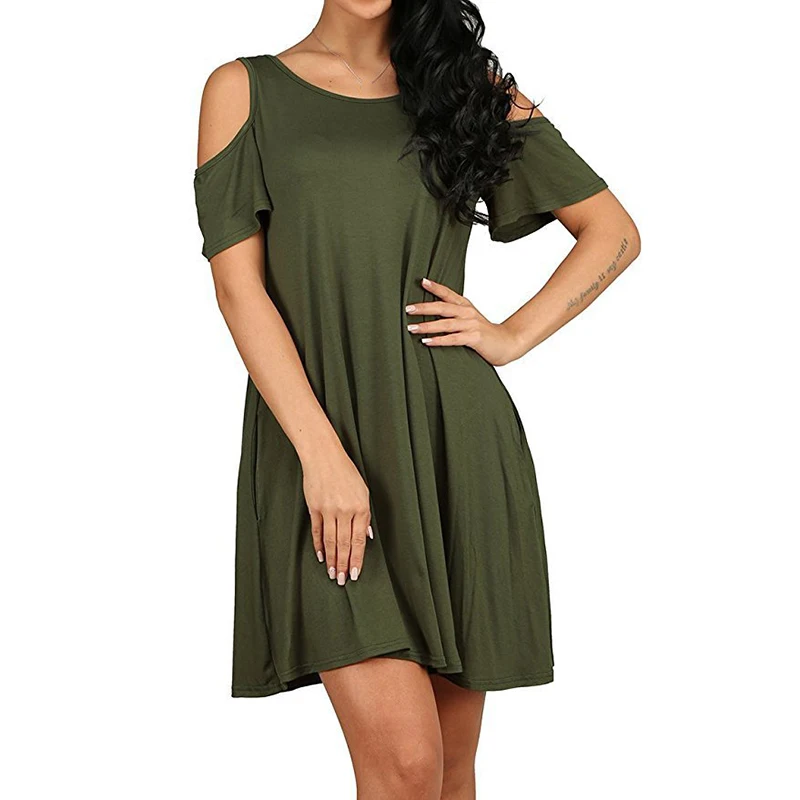 * Описание товара: сплошной цвет, сексуальное платье с открытыми плечами, длина до середины бедра, Повседневное платье