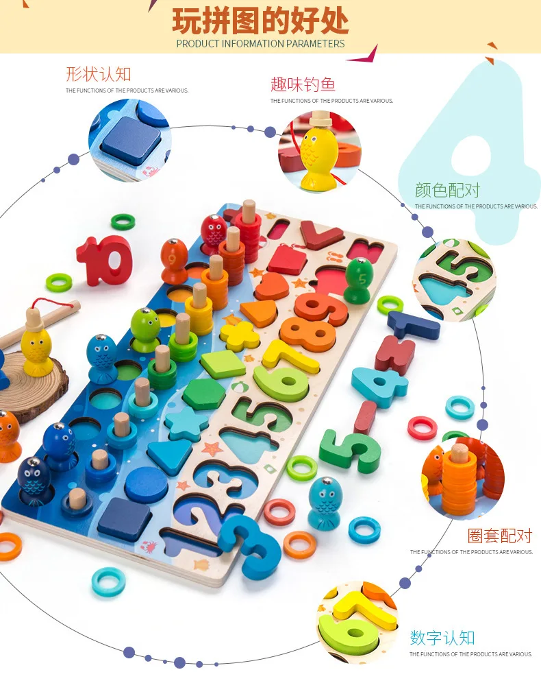 Игрушки для детей развивающие игры деревянные бусины клип Рыба Магнитная детская игрушка многофункциональная головоломка Монтессори математические игрушки 038