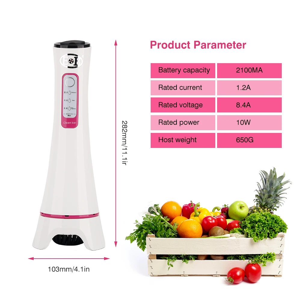 * Классический дизайн, красивый и практичный: вся машина 650 г, тонкая и гладкая поверхность, Разлагаемый и экологически чистый материал ABS, водонепроницаемый и пыленепроницаемый, нежный свет * Аккумуляторная батарея, используется для 30 раз после зарядки, без излучения, экологически чистый * Беспроводная обмотка, портативная и простая в использовании: маленькая Талия классического дизайна, легко захватывается, без проблем с намоткой проводов * Полная физическая Чистка, без каких-либо химических чистящих средств * Одна кнопка, интеллектуальное время: только одна кнопка во всем корпусе, которая проста в эксплуатации, слегка нажмите в течение двух секунд, чтобы начать пять минут умной работы и автоматически выключится после завершения * Эффективно удаляет 97% остатков пестицидов и помогает держать вдали от химических опасностей * Три режима, светодиодный дисплей работы: по умолчанию используется режим дезинфекции фруктов и овощей, в зависимости от объекта очистки, можно переключать режим работы мяса и посуды * Многократное использование: Не используйте никаких ограничений на место проведения: можно использовать на кухне, гостиной, на балконе, на открытом воздухе и так далее