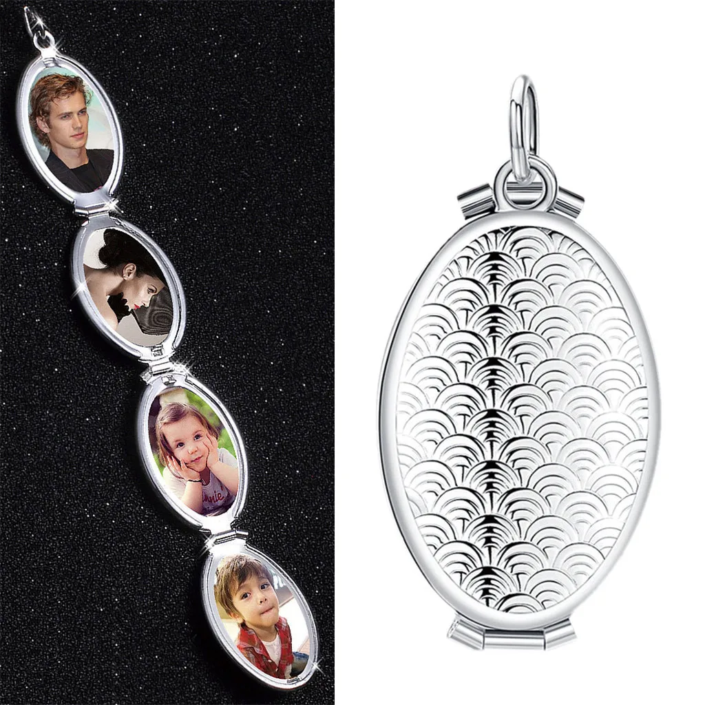 Овальный медальон 4 слота кулон-фоторамка ожерелье ювелирные изделия подарок твердый