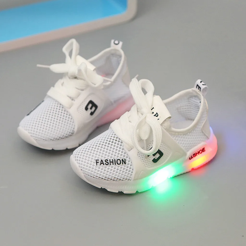 Одежда для маленьких девочекСетчатые дышащие кроссовки со светящимися вставками