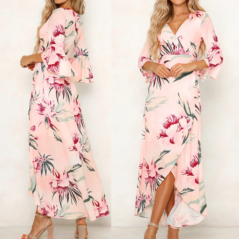 * Описание товара: женское летнее сексуальное длинное пляжное платье с v-образным вырезом и оборками
