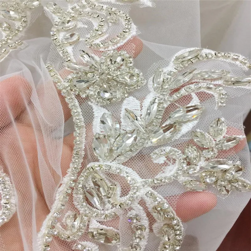 Супер Изысканный чистый ручной работы прозрачный кристалл свадебная Аппликация из бисера с тюлем Размер для каждой детали составляет около 8x30 см Прозрачные Чистые стразы из бисера, тюль, свадебный пояс, аппликация