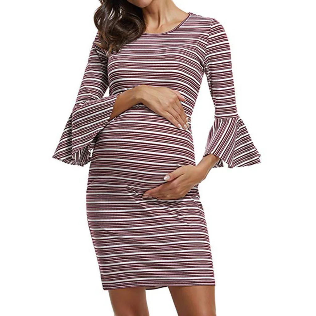 Модное Полосатое платье для беременных женщин