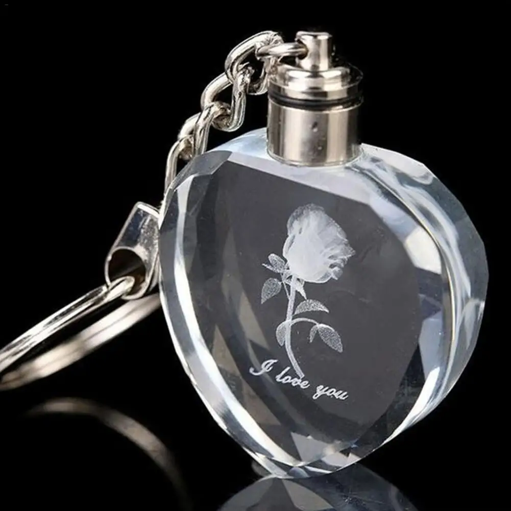 Новый Сказочный Кристалл Роза LED свет брелок сердце любовь брелок кольцо резной LED подарок Любовь кристальная Роза для подарка4