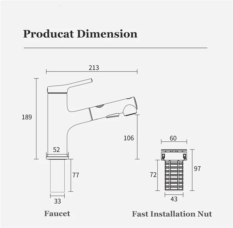 Нажмите и поверните, 10 секунд может завершить сочетание смесителя, не легко встряхнуть и рассыпаться, без просачивания, без утечки капель, aperture 33-3838мм диафрагма установки, может быть адаптирована для большинства семей.