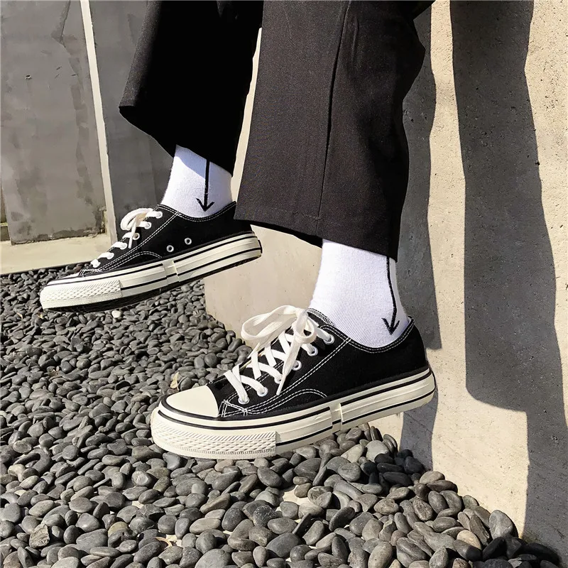 Модная повседневная обувь; мужские кроссовки на плоской подошве; Высококачественная классическая парусиновая обувь белого и черного цвета; летняя дышащая обувь для скейтборда на шнуровке
