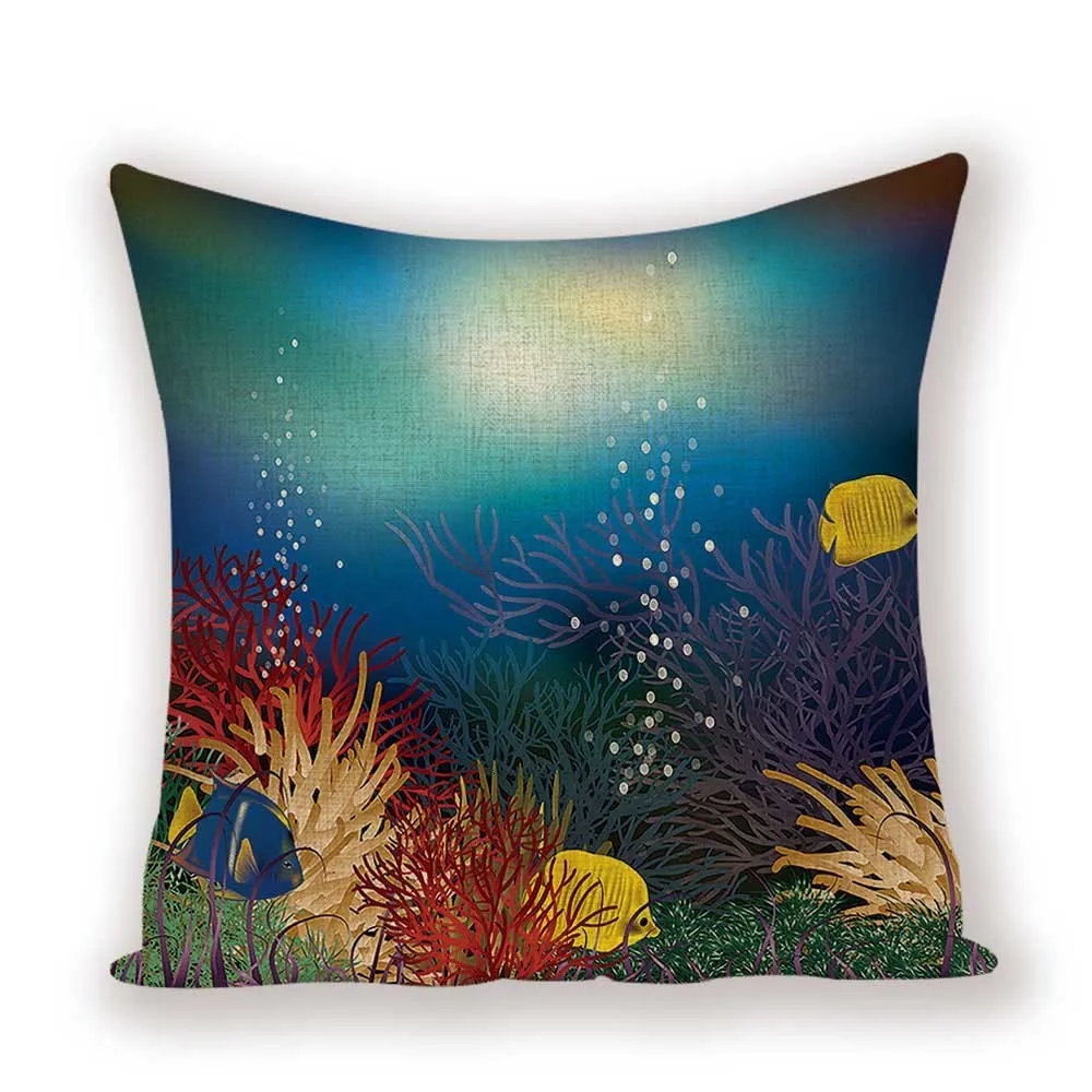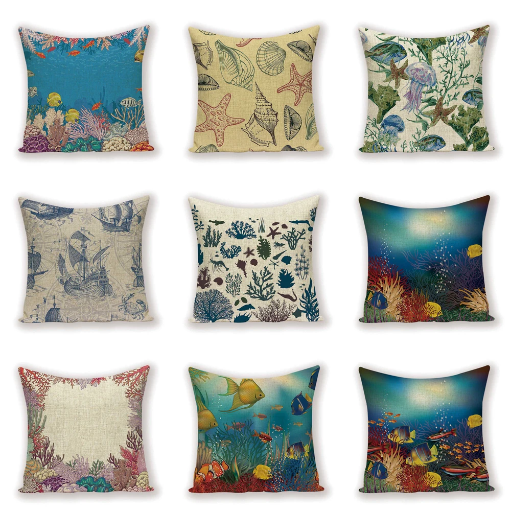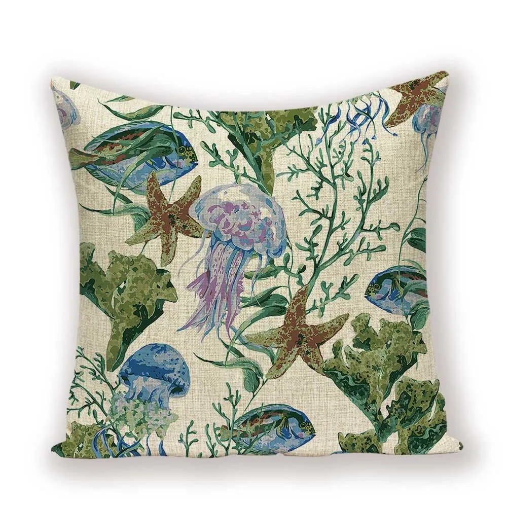 Украшение в морском стиле, наволочки для подушки, морские биологические подушки, коралловые медузы, тканевый Декор, домашний синий чехол для подушки ![]()
