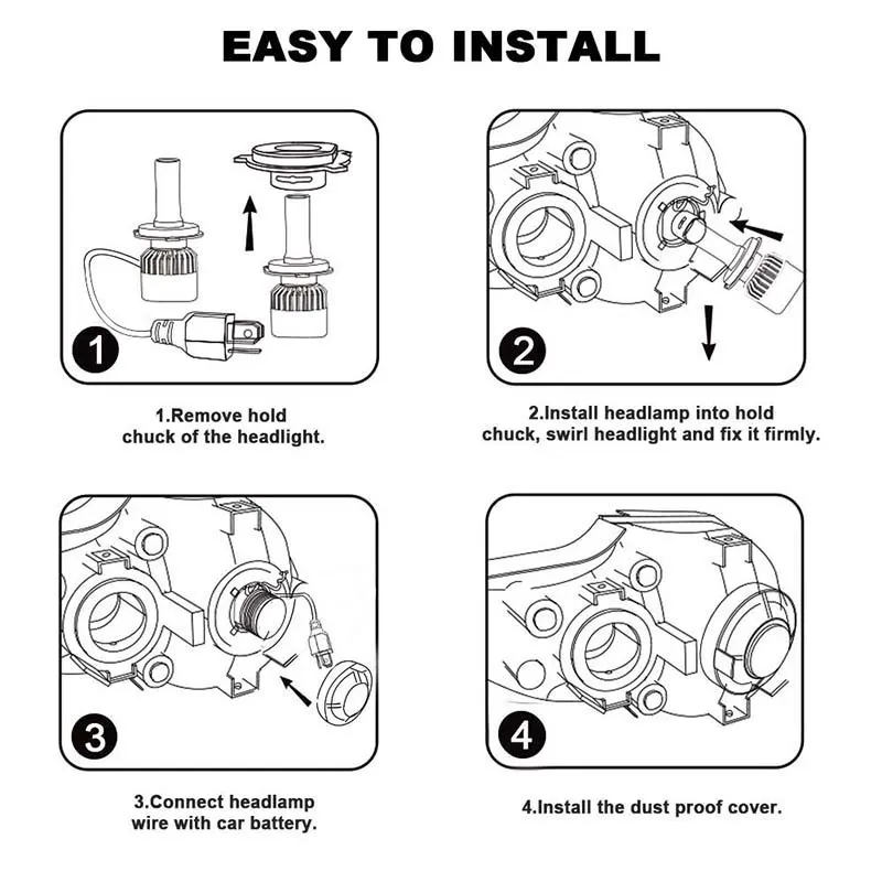 1. Ярче, чем галогенные/Ксеноновые фары, более мощные, чем галогенные. 2. Полностью алюминиевый корпус и быстрое охлаждение, обеспечивая безопасный температурный диапазон и длительный срок службы до 30000 часов 3. Водонепроницаемость: IP68, может использоваться в любых условиях воды 4. Быстрый запуск: быстрое включение/выключение времени отклика 5. Простая установка: Все в одной модели, такие же, как и оригинальная автомобильная лампа, подключи и работай Преимущества по сравнению с HID и галогенными лампами: 6. Высокоскоростной бесшумный вентилятор (12000р/мин), высокий поток воздуха для более быстрого охлаждения Светодиодный VS HID Быстрый вкл/выкл, нет "разогрева" Светодиодный галогенный 70% Энергосбережение и в 3 раза дольше срок службы