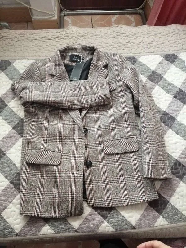 Винтажный однобортный клетчатый женский Блейзер, весенние куртки с карманами, Женские Ретро костюмы, пальто, рабочая верхняя одежда, высокое качество, S-4XL