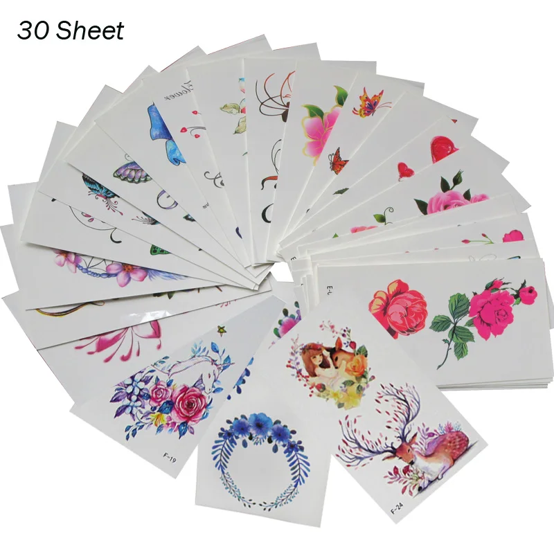 Различные типы: вы можете получить милый Дельфин, Бабочка, сердце, буквы, перо, олень и различные цветы наклейки татуировки на этот набор.