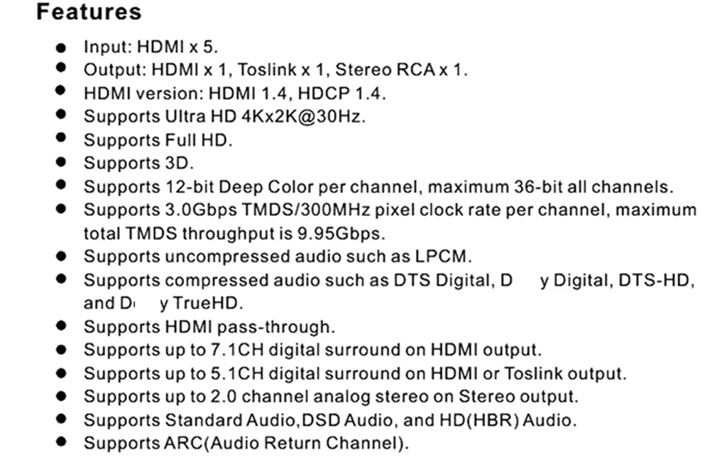 Этот товарБез функции декодирования,Он не декодирует цифровой/DTS, вам нужно добавить аудио декодер!