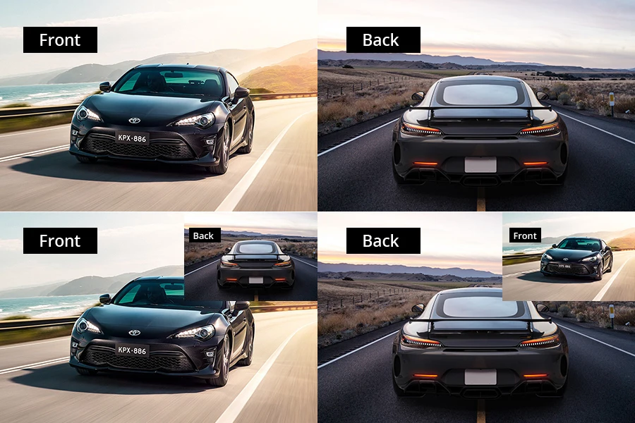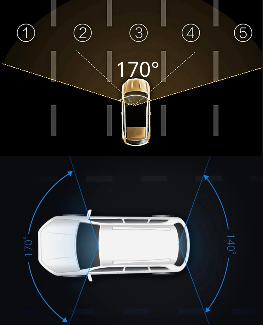 Этот автомобильный видеорегистратор имеет камеры, которые позволяют одновременно записывать видео с двух разных углов. Когда автомобиль в задней части, этот Автомобильный видеорегистратор автоматически переключает ti резервную камеру вид изображения парковочной линии