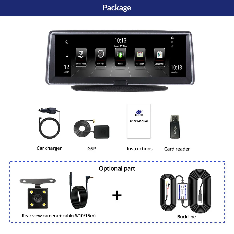 E-ACE, Автомобильный видеорегистратор, 8 дюймов, автомобильная камера, 4G, Android FHD, 1080P, видео регистратор, GPS навигация, ADAS, удаленный монитор, видеорегистратор с двумя объективами