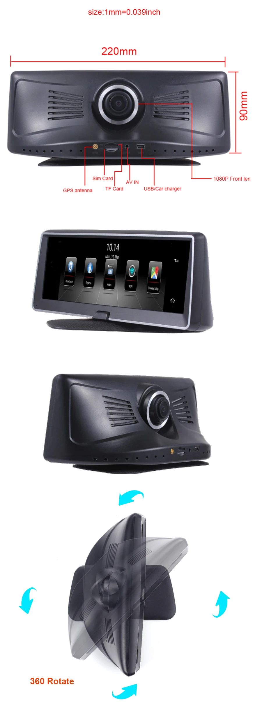 Особенности и технические характеристики Тип установки Зеркало заднего вида, портативный рекордер Размер экрана (дисплея) 8,0 дюймовый сенсорный экран Чипсет (процессор/ЦП) MTK6735 Оперативная память ОЗУ: 1G; ПЗУ: 16G Система Android 5,0 Очиститель датчика камеры Передняя 2 Мп + Задняя 1 МП Объектив камеры Угол 170 градусов + угол 140 градусов; Диафрагма F2.2 + диафрагма F2.2 Разрешение видео Передняя: 1920*1080P @ 30 кадров в секунду; Задняя: 720*480P @ 25 кадров в секунду Разрешение фотографий Размеры от 12 мес. Кодировка видео H.264 GPS навигация Поддержка Две SIM карты сети Поддержка(2G/GSM: 900 (B8)/1800 (B3); 3G/WCDMA: 2100 (B1) GSM: 900 (B8)/1800 (B3); 4G/LTE: FDD, 2100 (B1)/1800 (B3)GSM: 900 (B8)/1800 (B3) WCDMA: 2100 (B1) 900 (B8)С усовершенствованным алгоритмом распознавания, он обеспечит в режиме реального времени интеллектуальный. Предупреждение о столкновении вперед, предупреждение о выезде из полосы движения и система движения вперед транспортного средства, эффективно обеспечивают оповещения о безопасности. Примечание: скорость функции ADAS должна превышать 80 км/ч