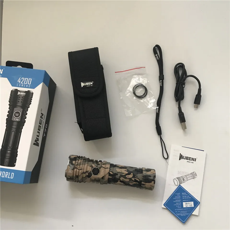 Wuben T70 камуфляж 4200lm 250 м Тип C перезаряжаемый МОЩНЫЙ СВЕТИЛЬНИК-вспышка s Cree XHP70 светодиодный 26650 батарея походный светильник