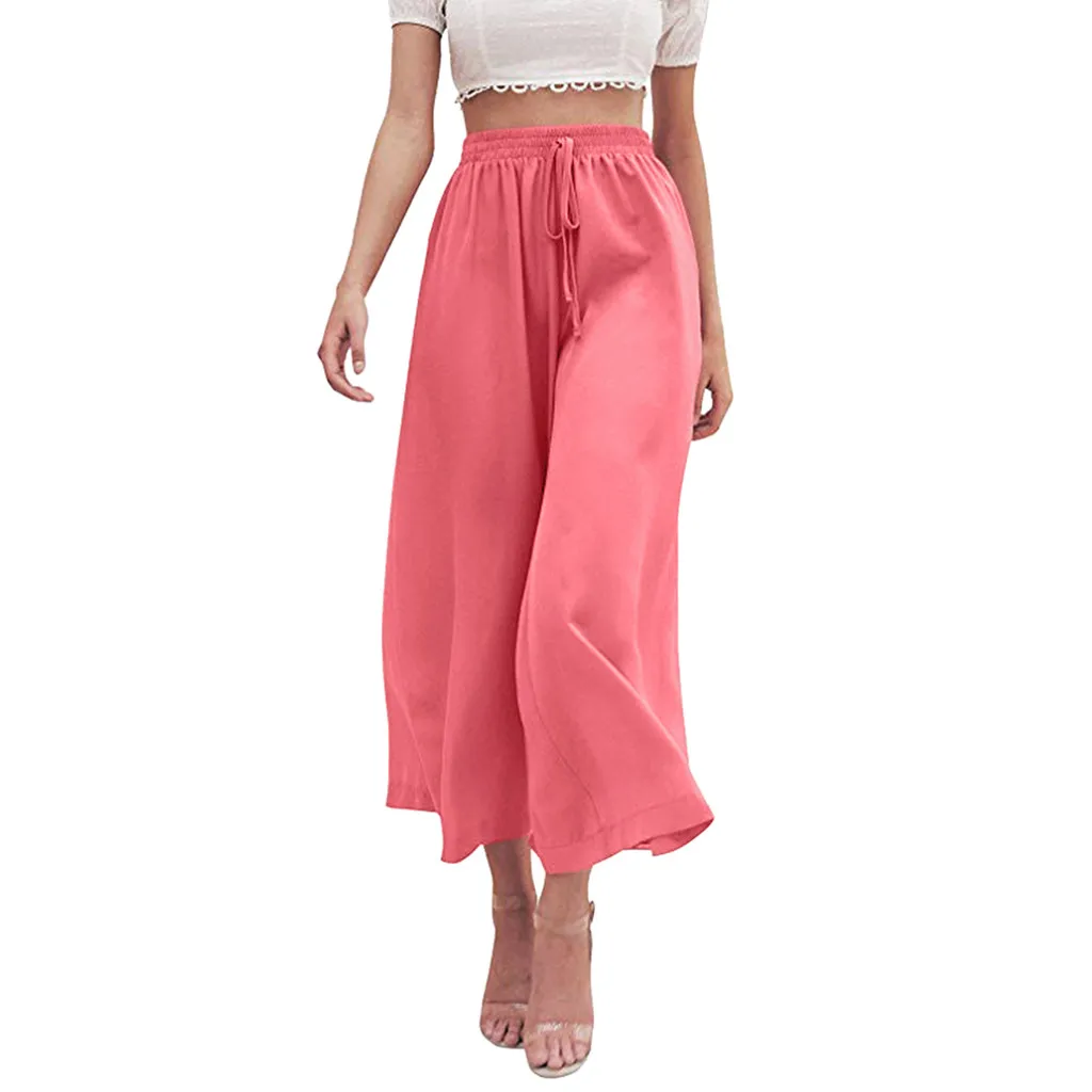 Женские летние мягкие шифоновые эластичные длинные брюки с высокой талией
