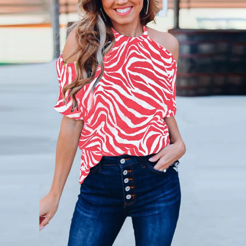 * Описание товара:Леопард, коммутированная, с открытыми плечами, короткий рукав