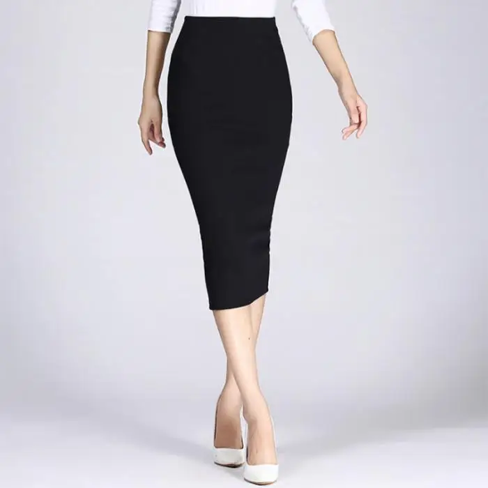 Осенне-зимняя женская юбка-карандаш с высокой талией из хлопка однотонная эластичная облегающая деловая облегающая юбка из органической кожи VK-IN