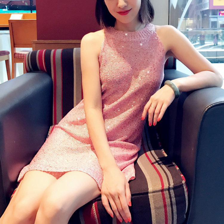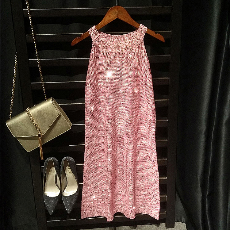 Европейский и американский бренд с новым весенним моделями, детское Облегающее вязаное платье с блестками, темпераментное элегантное платье