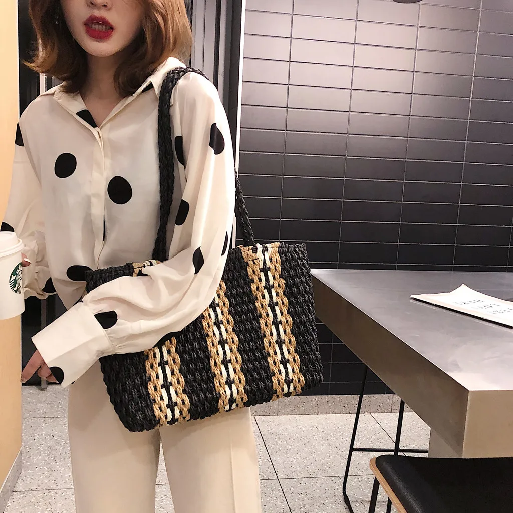 Женская модная однотонная сумка на плечо, плетенная сумка, пляжная сумка