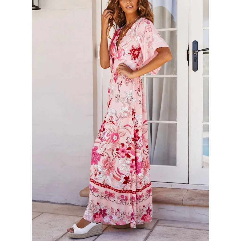 Женское летнее модное платье с глубоким v-образным вырезом и коротким рукавом