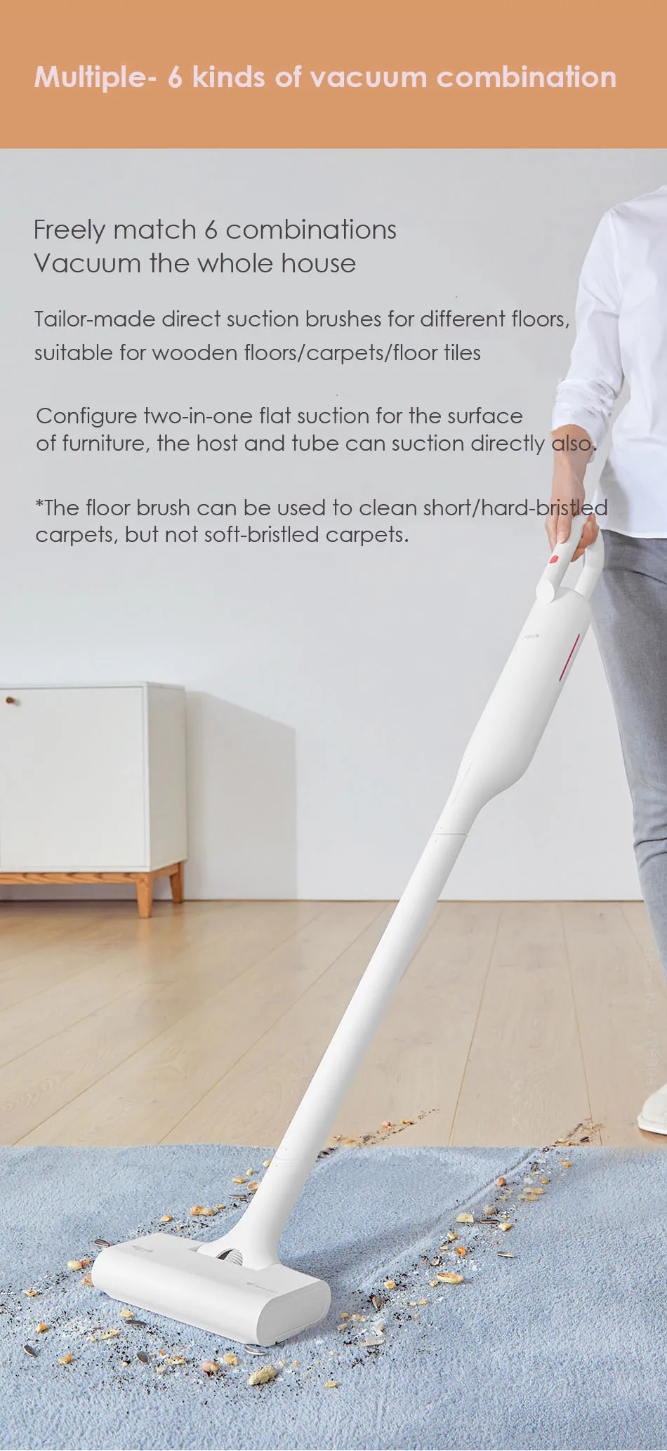 Основные характеристики: 1. Немецкая премия по дизайну Red Dot в 2010 году 2. 1 кг легкий хост, легко использовать одной рукой 3. 6 комбинации вакуума, очистите весь дом без пыли 4. Складной воздушный фильтр, фильтр 0,3мкм частиц 5. Беспроводное Мощное всасывание, 8500 ПА всасывающий двигатель 6. Быстрая зарядка нового типа C, срок службы батареи 30 мин 7. Оснащен силиконовой вешалкой, легко фиксируется, не скользит и не занимает места. Характеристики: Бренд: Deerma Модель: DEM-VC01 Номинальное напряжение: DC14.4V Номинальная мощность: 125 Вт Емкость аккумулятора: 2200 мАч Время зарядки: 3 часа (5 \/-/3A) Срок службы батареи: Стандартный ≥ 30 минут, высокий класс ≥ 15 минут Емкость пылесборника: 0.6л Вакуум: Стандартный до 6.5кпа, высококлассный до 8.5кпа Шум: ≤ 80 дБ (A) Вес изделия: 1,6 кг Размер: 210*180*1155 мм