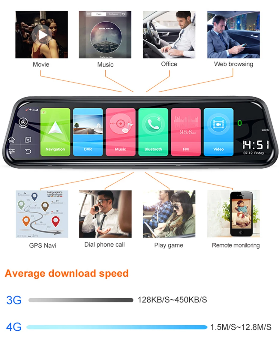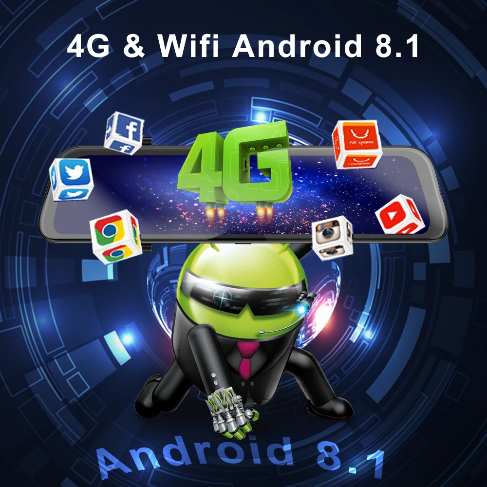 Встроенная память DDR3 объемом 2 ГБ и внутренняя память объемом 8 Гб, поддержка Google Play Store и предустановка, он может получить доступ к миллионам бесплатных и платных приложений, доступных для загрузки прямо на Ваш зеркальный видеорегистратор.