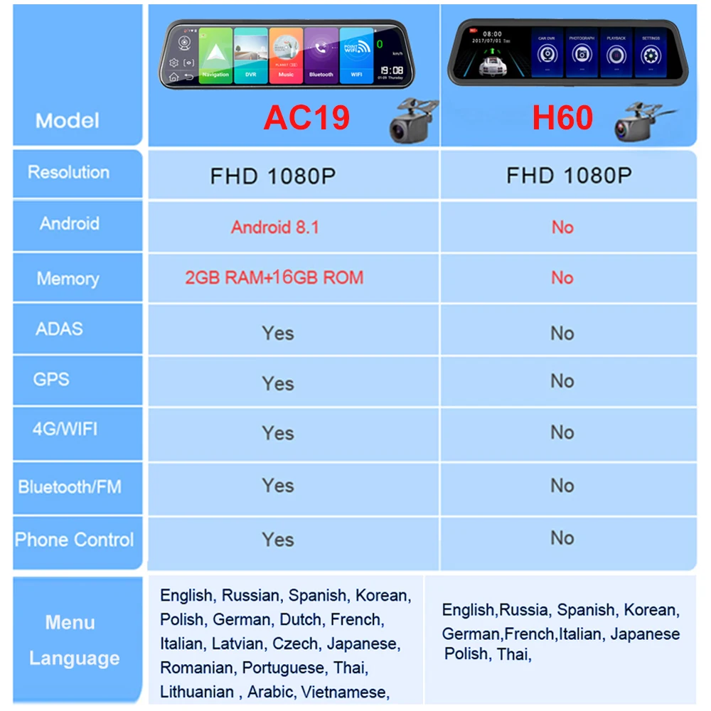 Четырехъядерный 1,4 ГГц высокопроизводительный процессор включает Android 8,1 интеллектуальных систем. Это делает Автомобильный видеорегистратор более быстрым. Плавно и стабильно сравнивайте.