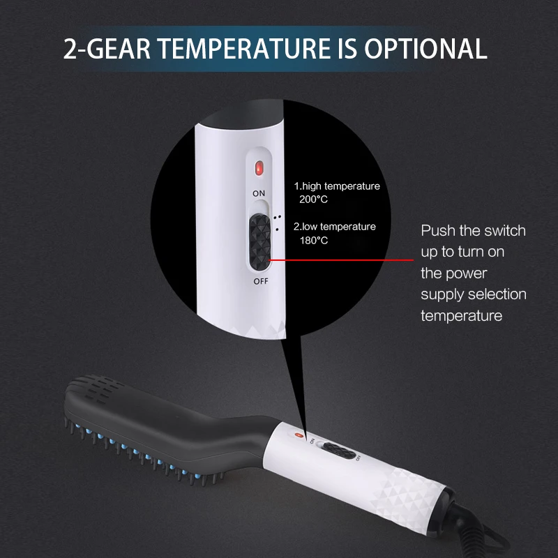 Два переключателя передач, низкая температура около 170 градусов, высокая температура около 190 градусов, индикатор показывает красный, PTC нагрев 60-120 секунд быстрый нагрев, алюминиевый сплав Гребень Спрей керамической глазури технологии, PA66 Инженерная пластиковая расческа, PC Инженерная пластиковая ручка, 360 градусов вращающаяся Линия электропередачи, чтобы предотвратить обмотку в процессе использования, Проводная вилка по умолчанию-это круглая вилка Евро VDE, при подключении к источнику питания, откройте. Выключите Первый светильник индикатора на зеленый светильник, второй светильник индикатора на красный светильник, выберите соответствующую температуру для подогрева около 60 секунд перед началом использования, начните с корня волос, гребень для волос, чтобы соответствовать, мужчины предлагают расчесывать назад, при расчесывании волос, Рекомендуется хранить медленно в течение 1-2 секунд, медленно расчесывать назад, повторять два-три раза, качество волос хорошее и мягкое, низкотемпературная передача 170 градусов, качество волос толще. Рекомендуется использовать высокотемпературную передачу 190 градусов. Или использовать его в соответствии с вашими предпочтениями. После расчесывания волос рекомендуется использовать спрей для воды.
