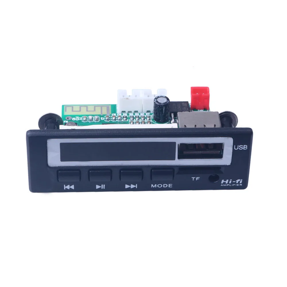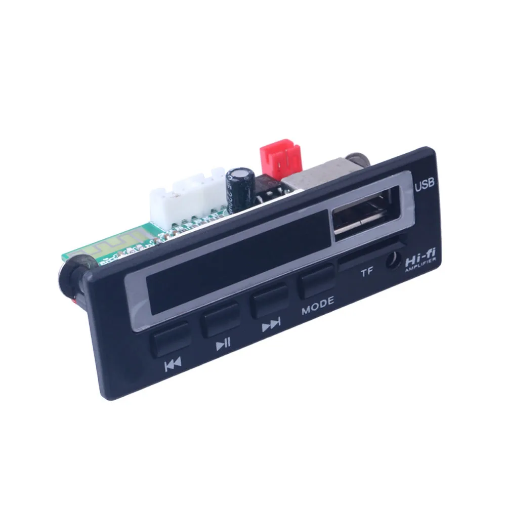 Светодиодный: цифровой экран дисплей, дисплей красный, цветной экран дисплей;2 USB: Подключение U-диска (максимальная поддержка 32GB, не входит в комплект)3 VOL-: короткое нажатие для выбора предыдущей песни; Длительное нажатие для уменьшения громкости4 воспроизведение/пауза: короткое нажатие-это переключение между паузой и воспроизведением; Короткое нажатие в FM-режиме-автоматическое5 VOL +: короткое нажатие для выбора следующей песни; Длительное нажатие для увеличения громкости6 режимов: USB / TF / FM / AUX / Bluetooth-Переключение тона7 TF: подключение карты памяти TF (максимальная поддержка 32GB, не входит в комплект)8 инфракрасный приемный модуль Посылка входит: 1 X Плата декодера MP3 WMA WAV1 пульт дистанционного управления(Без батарей)
