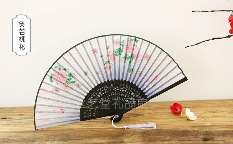 Японский складной веер, китайский стиль, женский вентилятор, вишневый цветок, Шелковый веер, старинное ремесло, складной маленький женский вентилятор Продается со скидкой